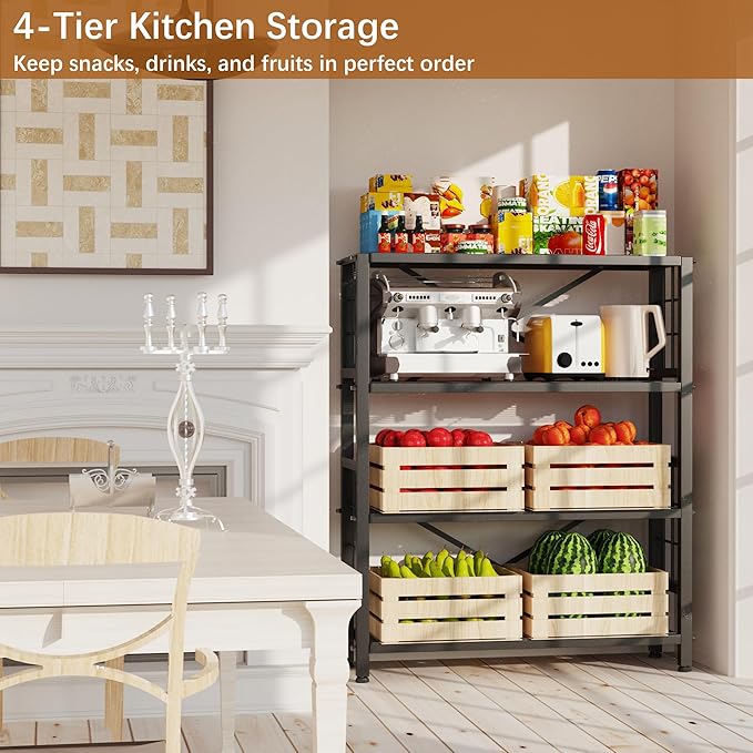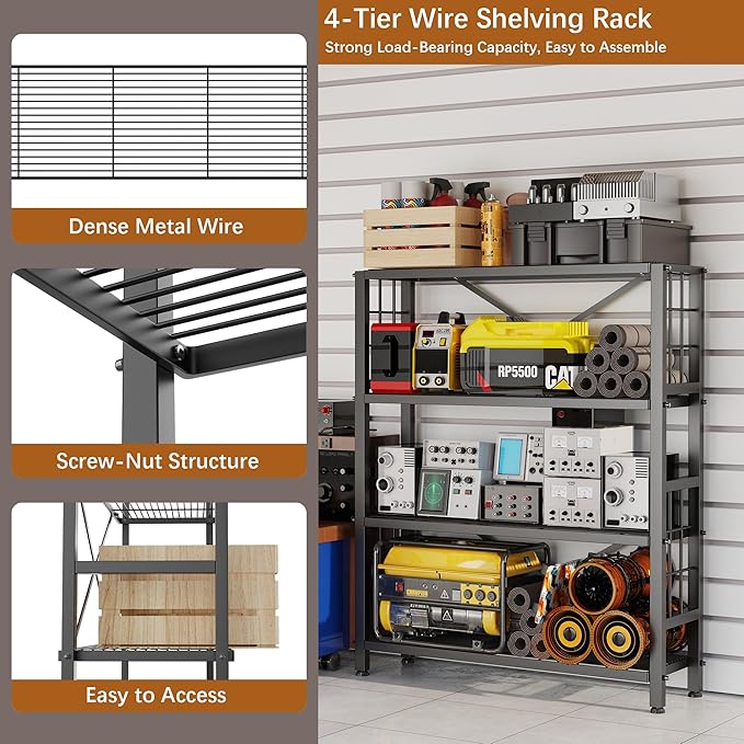 GIOTORENT 4-Wire Heavy-Duty Shelf, Standing Storage Shelves, Metal Shelving Unit Pantry Rack, 1200LB Load Capacity, for Garage Kitchen Organizer (Black)