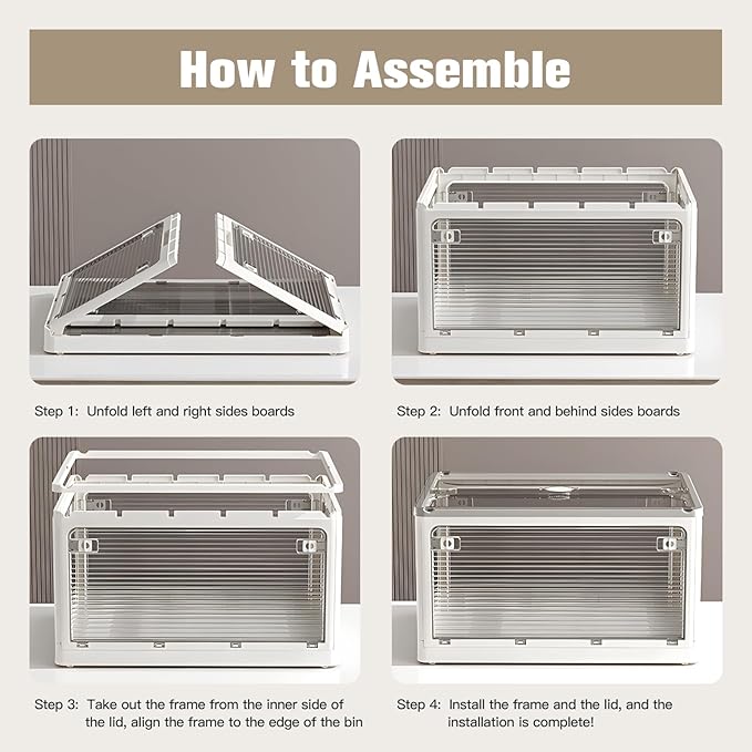 3 Pack Foldable Storage Bins, 26 Gal Collapsible Storage Bins with 5 Opening Ways, Folding Storage Boxes, Foldable Storage Cubes for Clothing, Books, White