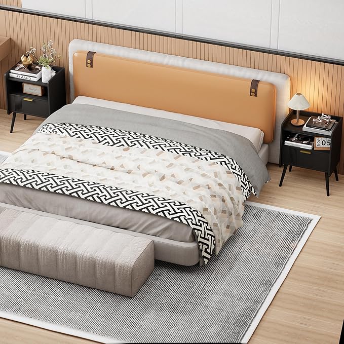 Night Stand Modern End Table with Storage Drawer and Open Shelf, Small Bedside Stand, Wooden Sofa Side Table for Bedroom,Study Room and Small Spaces (Black)