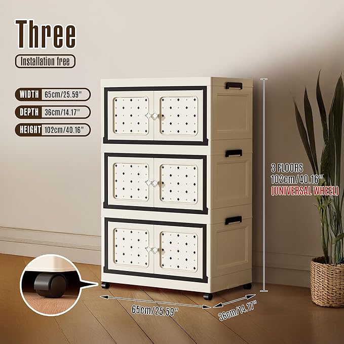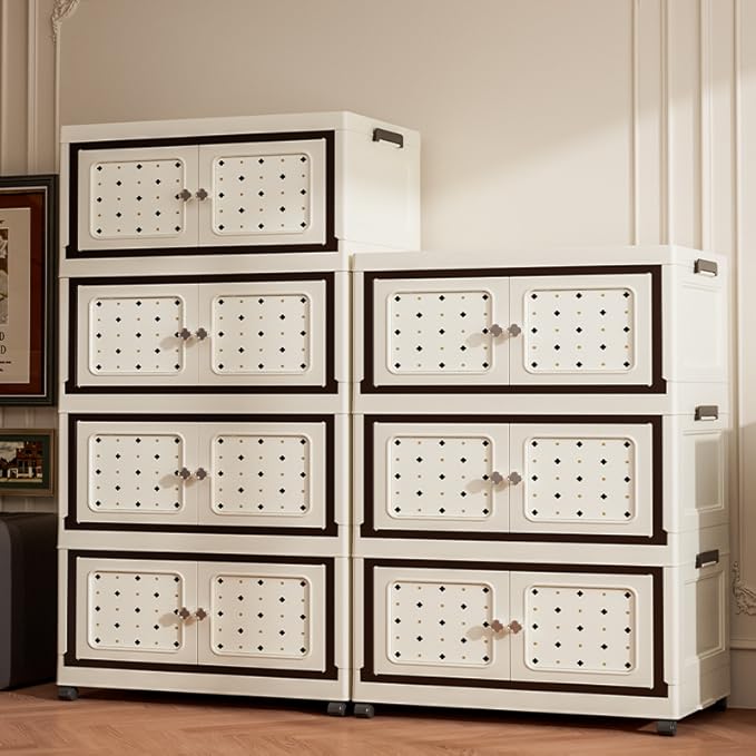 SunSettler Stackable Storage Bins with Lid, Plastic Collapsible Cabinet with Wheels, Large Closet Organizer, Foldable Storage Containers for Home and Office