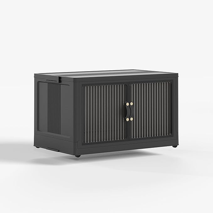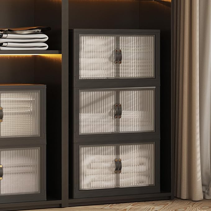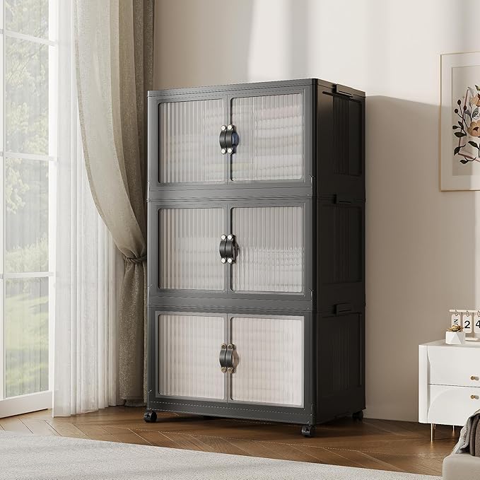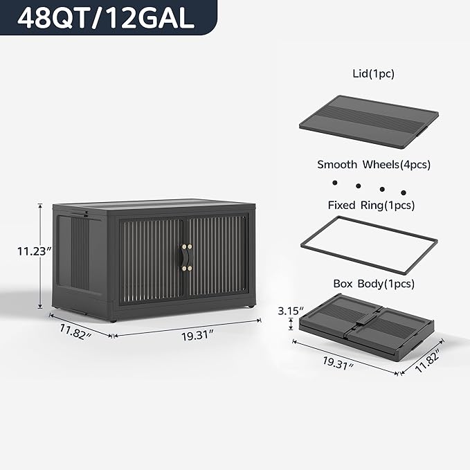JONZEN 48Qt Stackable Storage Bins with Lid, 12GAL Collapsible Storage Bins with Wheels, Closet Organizer and Storage Drawer, Plastic Clothes Storage Cabinet Containers for Home Garage, 1Pack Black