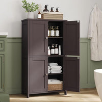 Nuturelly Bathroom Floor Storage Cabinet, Freestanding Pantry Cabinets with 4 Doors & 3 Adjustable Heights, Bathroom Organizers and Storage with Waterproof Board & Metal Handles for Kitchen, Brown