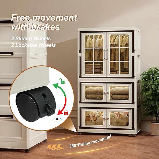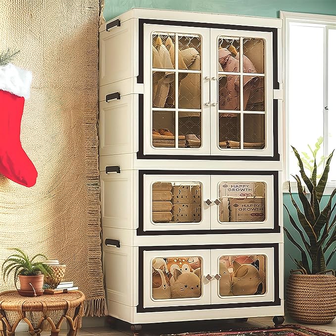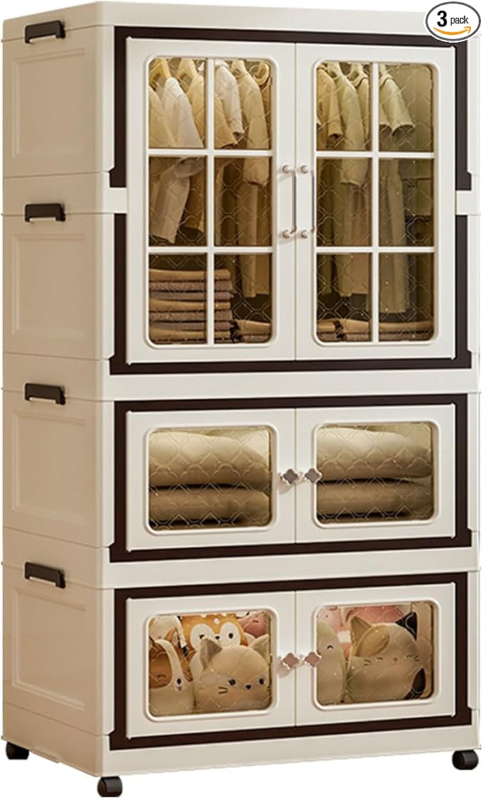 SunSettler Stackable Storage Bins with Lids, Stackable Organizers Storage Cabinets, Plastic Collapsible Bins with Doors, Folding Store Box Cabinet for Home Office Dorm