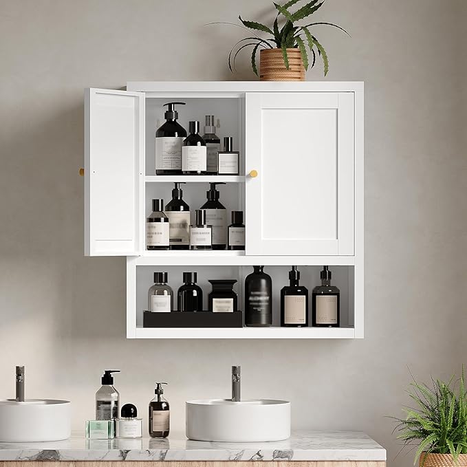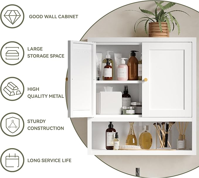 Metal Bathroom Storage Cabinet, Metal Storage Cabinet with 2 Adjustable Shelves & 2 Doors,Freestanding Sideboard for Small Spaces (White, Wall Cabinet-22.59" H)