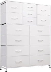 WLIVE Tall Console Table with 15 Fabric Drawers, Entryway Table with Storage, Tall Storage Organizer with Wood Top, Steel Frame for Living Room, Hallway, Office, White