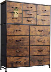 WLIVE Tall Console Table with 15 Fabric Drawers, Entryway Table with Storage, Tall Storage Organizer with Wood Top, Steel Frame for Living Room, Hallway, Office, Rustic Brown