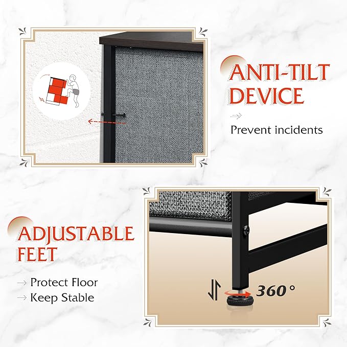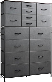 WLIVE Tall Console Table with 16 Fabric Drawers, Entryway Table with Storage, Large Storage Organizer with Wood Top, Steel Frame for Living Room, Hallway, Office, Dark Grey