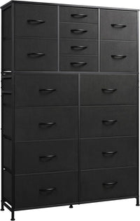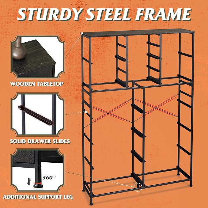 WLIVE Tall Console Table with 16 Fabric Drawers, Entryway Table with Storage, Large Storage Organizer with Wood Top, Steel Frame for Living Room, Hallway, Office, Charcoal Black