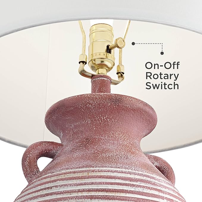 John Timberland Sierra Rustic Southwestern Style Jug Table Lamp 30" Tall Red Brown Sandstone Linen Drum Shade Decor for Living Room Bedroom House Bedside Nightstand Home Office Entryway Reading