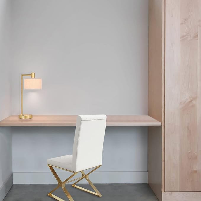 XiNBEi Lighting Table Lamp USB Desk Lamp with Fabric Shade, Modern Bedside Iron Lamp Satin Brass Finish for Bedroom Living Room & Office XB-TL1230-SB