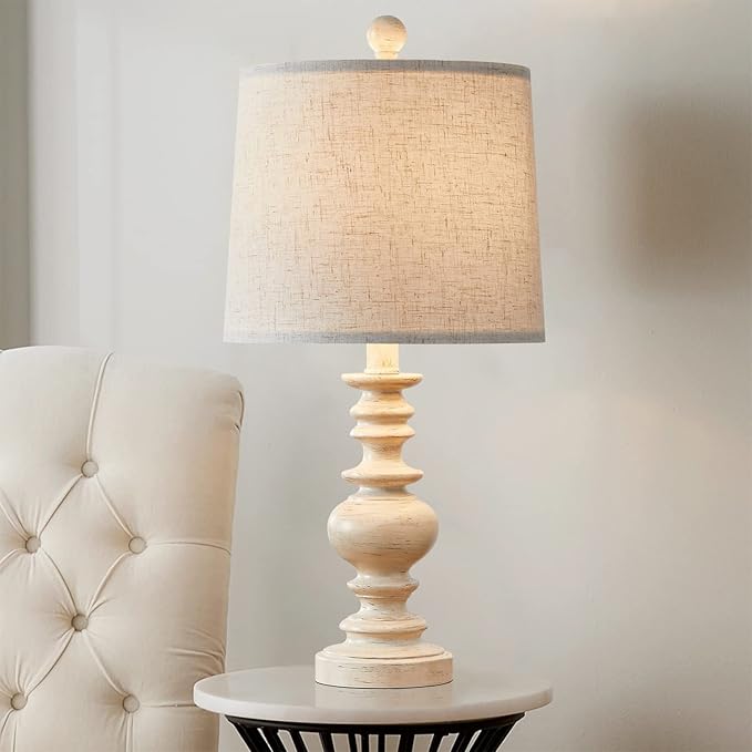 BOBOMOMO Tradition 20.5" Rustic Table Lamp Set of 2 for Living Room Farmhouse Bedside Desk Lamps Bedroom Nightstand Vintage Lamps Linen Washed(Suitable for Decorating Small Areas)