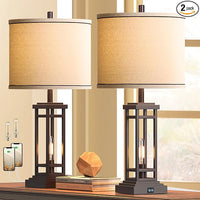 ROTTOGOON 27.5 Tall Farmhouse Table Lamps with USB C + USB A Charge Ports, Rustic Living Room Lamps Set of 2, Black Industrial End Table Lamp for Bedroom Living Room Nightstand (Oil-Rubbed Bronze)
