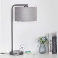 Table Lamp for Living Room, Modern Bedside Lamp with USB C+A Ports, Fully Dimmable Nightstand Lamp with Beige Drum Shade, Silver Finish Side Table Lamp for Bedroom Office, 3000K LED Bulb Included