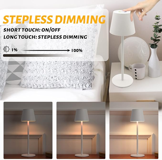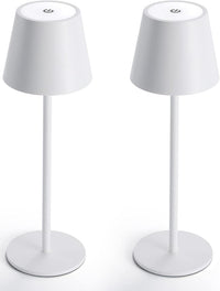 Maksone 2 Pack LED Cordless Table Lamp, 6600mWh Rechargeable Battery Desk Lamp, 3000K Stepless Dimming Night Light, IP54 Waterproof Metal Outdoor Portable Lamp for Camping, Restaurant (White)