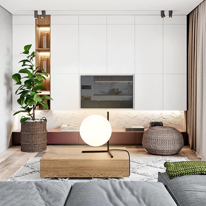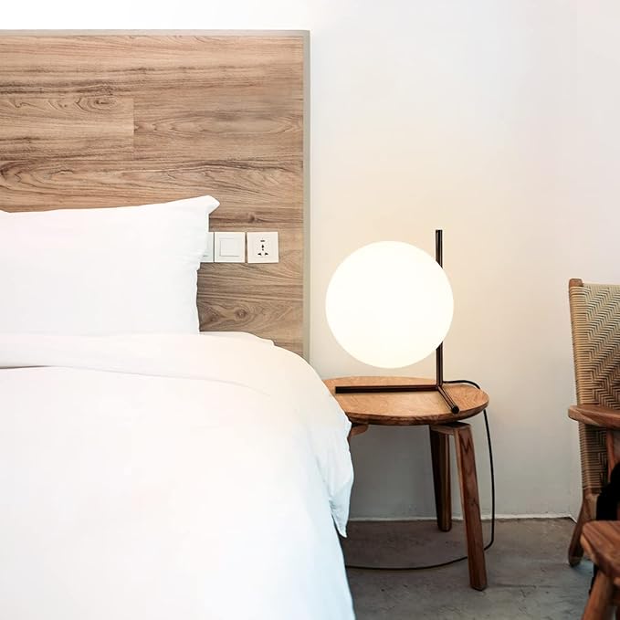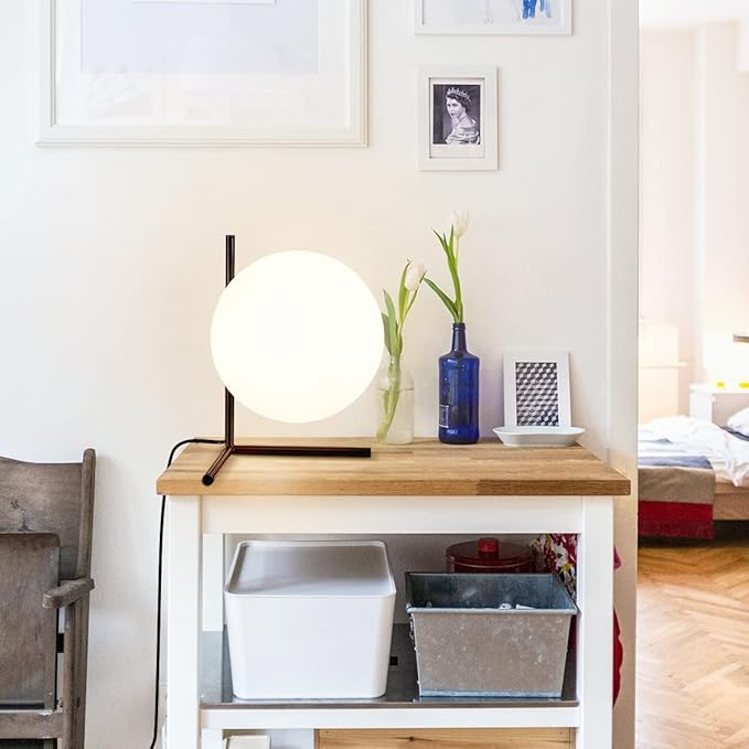 BOKT Modern Mid Century Matte Black Globe Table Lamp Post Modern Mini White Glass Desk Lamp Industrial Farmhouse Nightstand Bedside Lamp Lighting Fixture