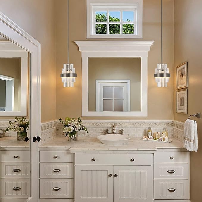Modern Glass Pendant Light 7 Inch Brushed Nickel Island Light 2 Pack Ceiling Chandelier of Farmhouse Suitable for Pendant Lights Above Foyer, Hallway, Dining Table, and Washbasin