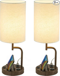 Dreamholder Table Lamp with 3 USB Charging Ports, Modern Desk Lamp with AC Outlet and Phone Stands, Perfect Bedside Lamp for Bedroom, Living Room, Office (Pack of 2), Walnut