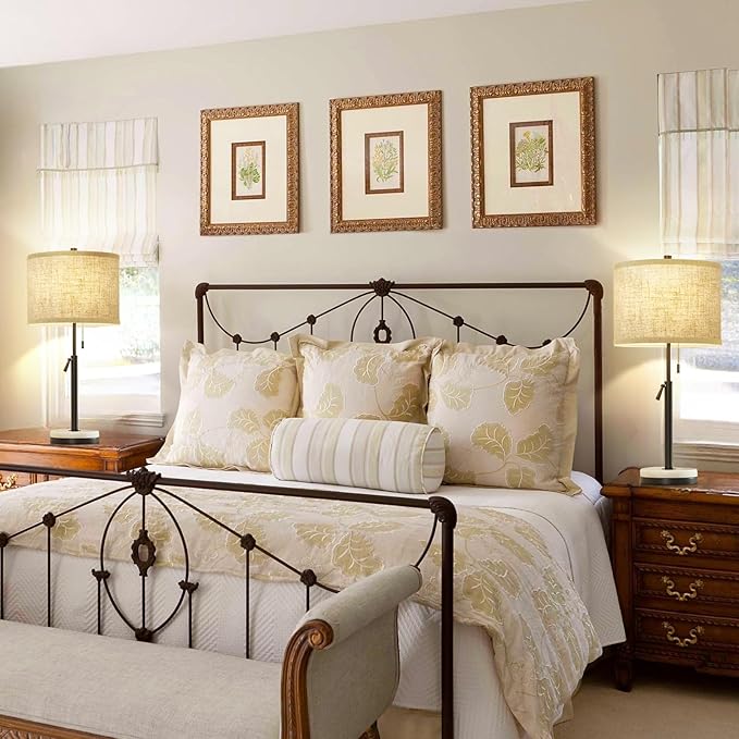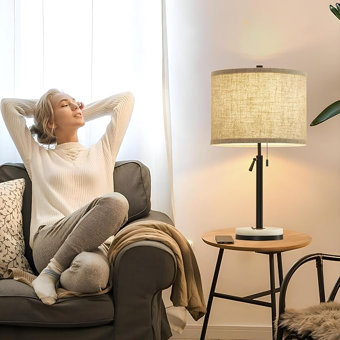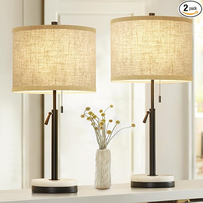 GyroVu Table Lamps Set of 2, Adjustable Height Bedside Marble with Pull Chain Nightstand Modern Lamp for Living Room Bedroom Office Bulbs Not Included(Black) Black Set of 2