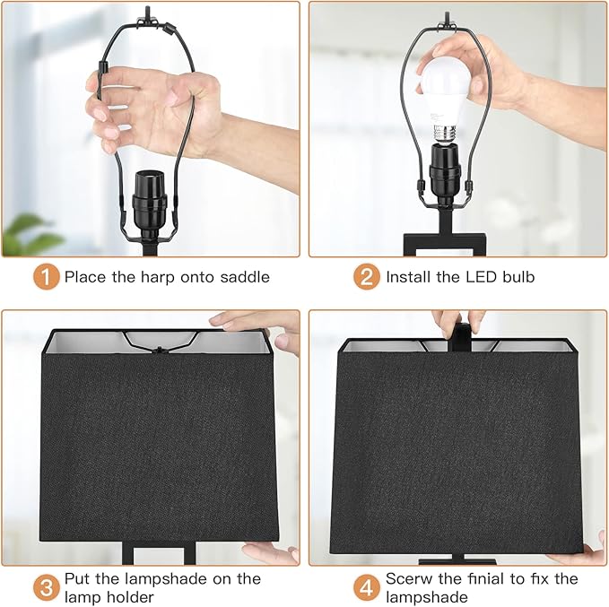 Touch Control Table Lamps Set of 2, Modern Bedside Lamps with 2 USB Charging Ports & AC Outlet, 3-Way Dimmable Wood Nightstand Lamp for Living Room Bedroom End Table Office Black(2 LED Bulbs Included)