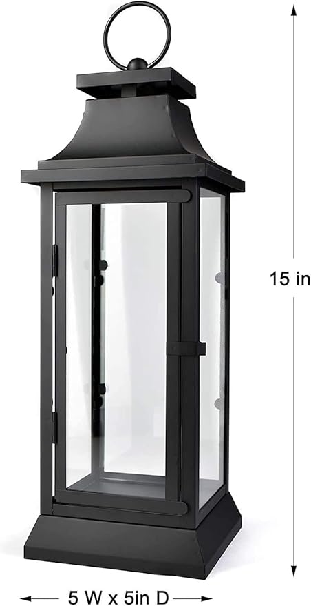 Serene Spaces Living Set of 4 Black Hurricane Lanterns with Clear Glass Panels - Ideal for Home Decor, Parties & Events - Table Top or Hanging Lantern for Indoor & Outdoor Use - Measures 15" Tall