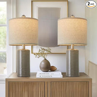 20.25/inch Modern Ceramic Table lamp Set of 2 Small Farmhouse Bedside lamp Dark Grey Nightstand Lamp End Table Lamps for Living Room Bedroom Study Office AMZ-T1109DG0