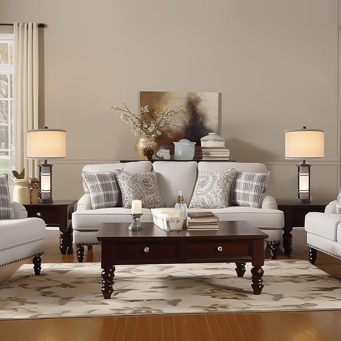 Set of 2 Modern Table Lamps for Living Room, Contemporary Nightstand Lamp with Dual USB Port, Bedside Lamps with White Frosted Glass Night Light for Bedroom, 4 Bulbs Included (Black)