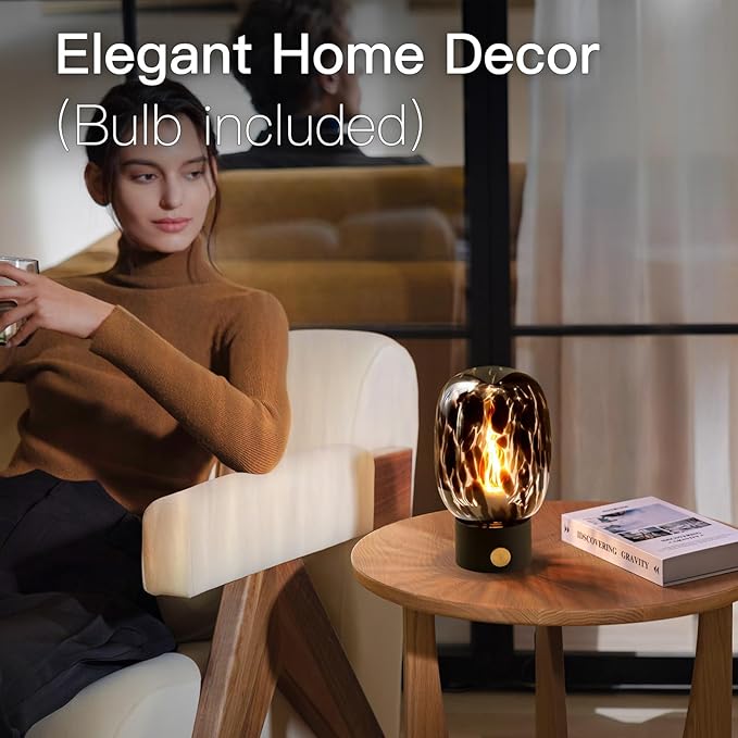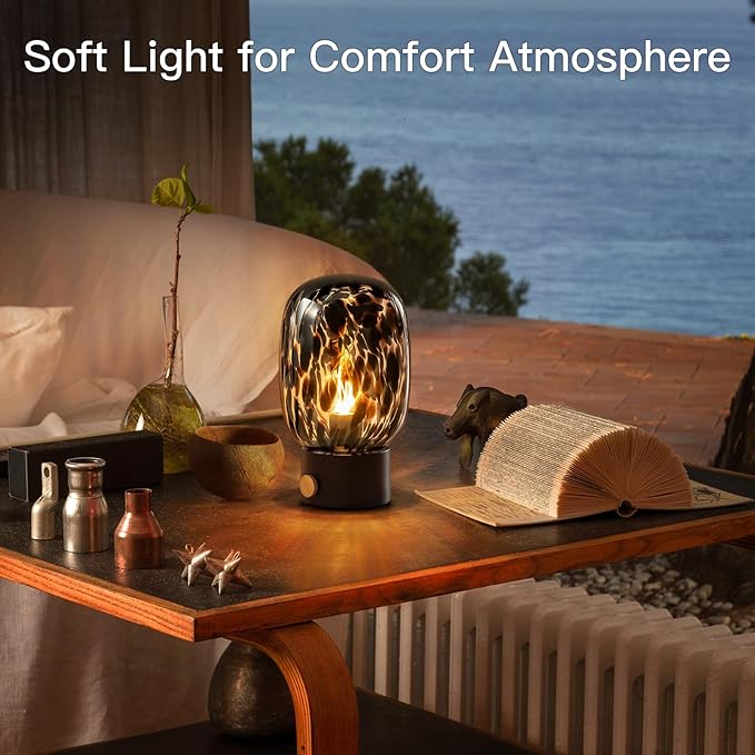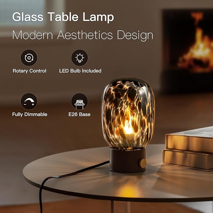 ONEWISH Nightstand Table Lamp,Small Vintage Desk Lamp with Bulb,Bedside Lamp Translucent Glass Stepless Dimmable,Murano Aesthetic Home Decor for Bedroom Living Room Kitchen