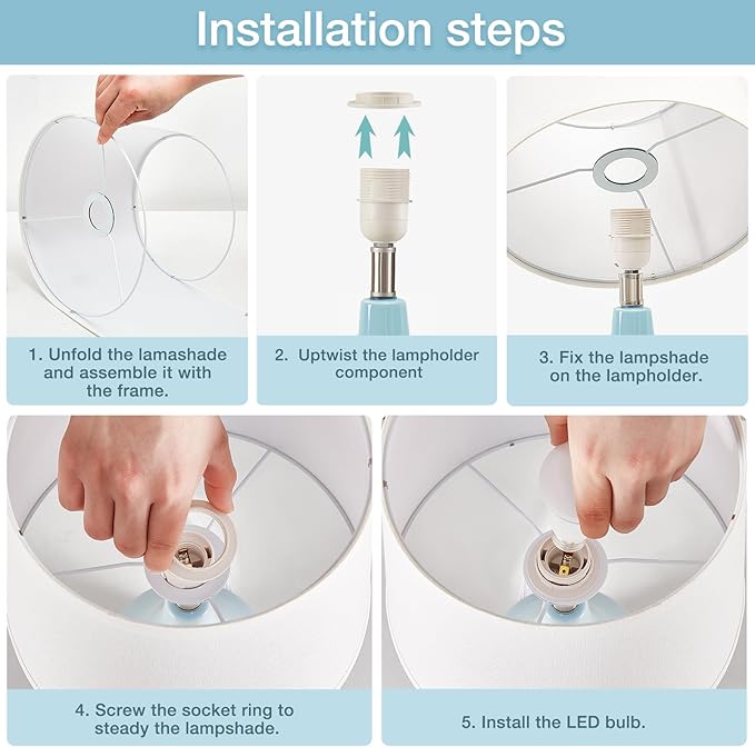 GyroVu Table Lamp Set of 2, 18.63” Ceramic Lamp Classic Beside Lamps Nightstand Lamp Modern Cute Lamp for Living Room, Bedroom & Office Rocker Swtich Sky Blue-LED Bulbs Included