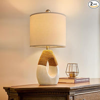 OYEARS 19” Boho Table Lamps Bedroom Living Room,Suitable for Small Space,Farmhouse Rattan Lamp Rustic Egg Design Resin Nightstand Bedside Lamps for Bedroom Living Room Office Study Rest Decor