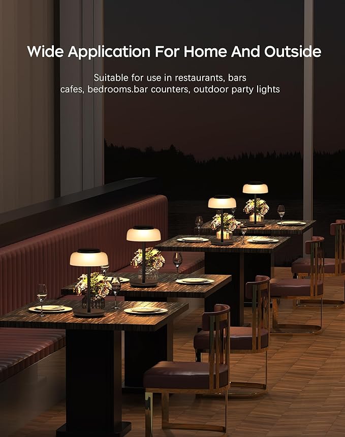 QiMH Battery Operated LED Table Lamp, 5000mAh Rechargeable Cordless Lamp Set of 2, Stepless Dimmable Touch Control, Small Waterproof Desk Night Light for Living Room, Bedroom, Outdoor Bar (Black)