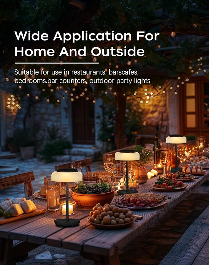 QiMH Battery Operated LED Table Lamp for Living Room, 5000mAh Cordless Desk Lamp with Stepless Dimmable Touch Control, Mini Rechargeable Night Light for Bedroom, Outdoor bar (Black-RGB)