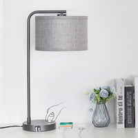 Gray Bedside Lamp with USB C+A Charging Ports, Fully Dimmable Modern Nightstand Lamp with Grey Fabric Shade, Tall Reading Lamp Desk Lamp for Bedroom Living Room Office with 3000K LED Bulb