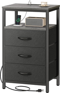 Huuger Nightstand with Charging Station, 27.6 Inch End Table Bedside Table with USB Ports and Outlets, Fabric Drawers, Night Stand for Bedroom, Charcoal Gray