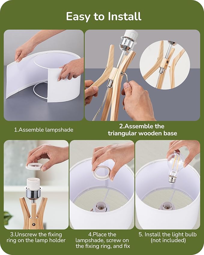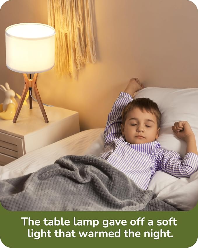 EDISHINE Modern Tripod Table Lamp, 17.5" Bedside Lamp with Natural Wood Light Legs & White Linen Lampshade, Nightstand Lamp for Bedroom, Living Room, Reading Room, E26 Base