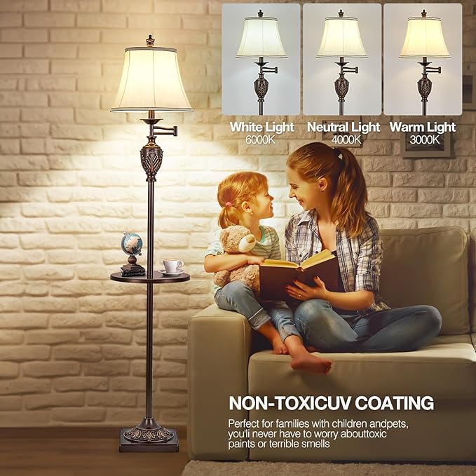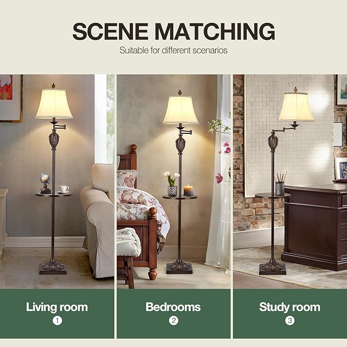 Traditional LED Floor Lamp with 350° Adjustable Swing Arm Lamp – Vintage Standing Pole lamp for Living Room, Bedroom and Office – Rustic Upright Floor Light for Home Décor with Silk Fabric Shade Sale