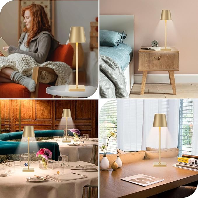 1 Pack Rechargeable Cordless Table Lamps, 5200mAh Battery Touch Table Light, Aluminum Shell Stepless Dimmable Portable LED Desk Lamp for Dinner/Restaurant/Outdoor Gold