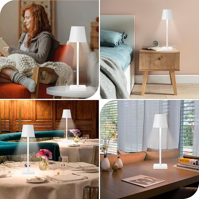 2 Pack Rechargeable Cordless Table Lamps, 5200mAh Battery Touch Table Light, Aluminum Shell Stepless Dimmable Portable LED Desk Lamp for Dinner/Restaurant/Outdoor White