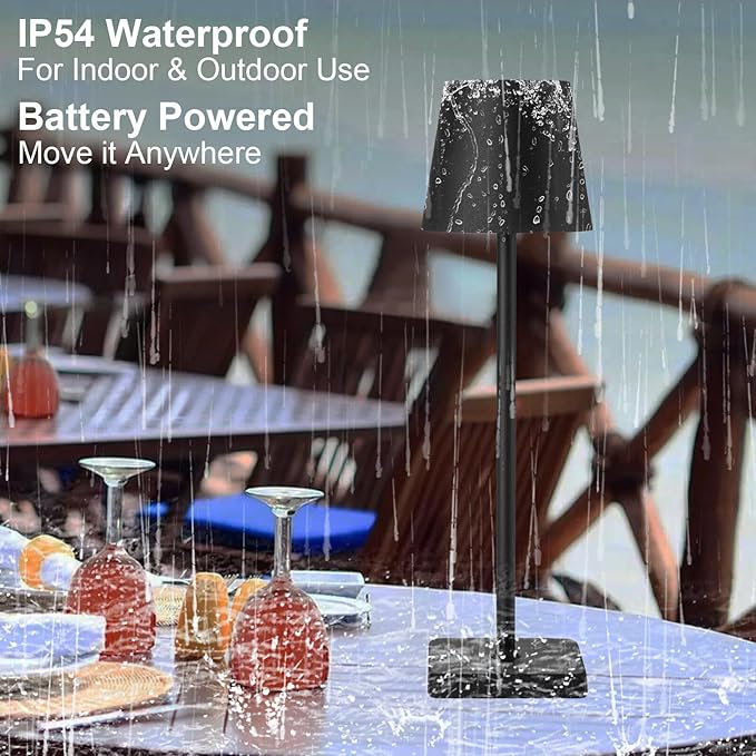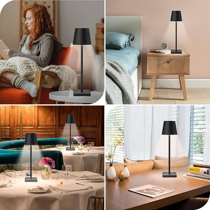 2 Pack Rechargeable Cordless Table Lamps, 5200mAh Battery Touch Table Light, Aluminum Shell Stepless Dimmable Portable LED Desk Lamp for Dinner/Restaurant/Outdoor Black