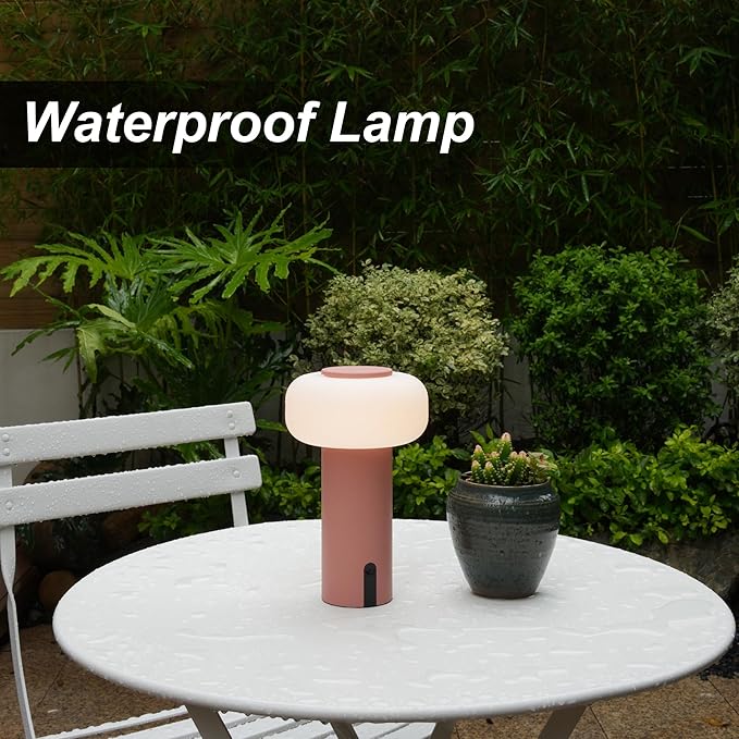 Shower Lamp Waterproof, Outdoor Cordless Table Lamp Rechargeable, Portable Battery Operated Light, Touch Dimmable Night Light for Bedroom/Patio/Dinning/Camping (Pink)