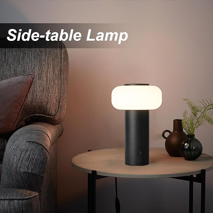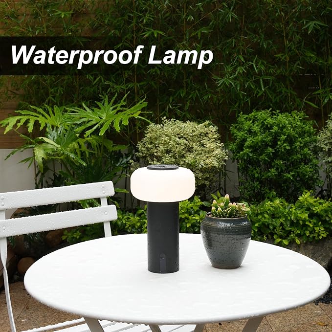 Shower Lamp Waterproof, Outdoor Cordless Table Lamp Rechargeable, Portable Battery Operated Lamp, Touch Dimmable Night Light for Bedroom/Patio/Dinning/Camping (Black)