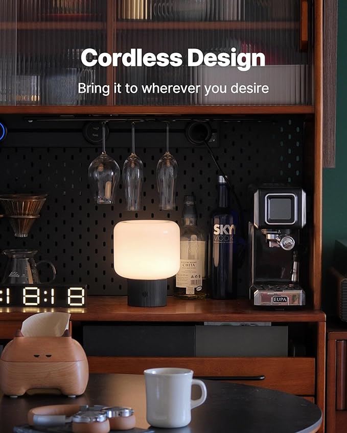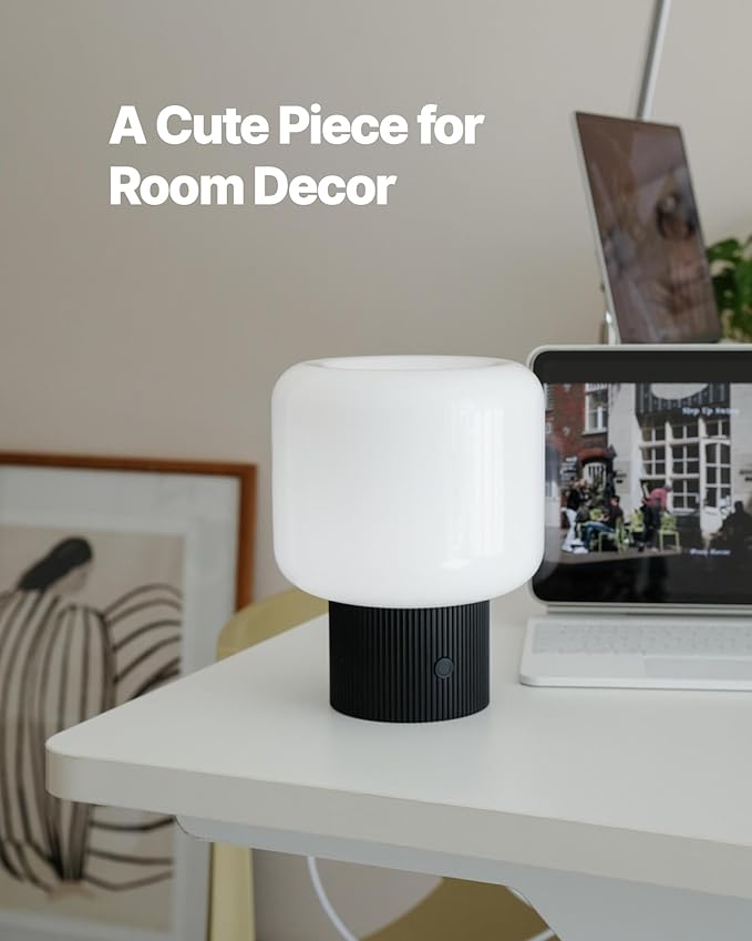 Halo Mushroom Lamp, 5W Cute Cordless Rechargeable Table Lamp with Glass Shade, 3 Color Temps LED Dimmable Ambient Lighting, Small Retro Touch Bedside Light for Bedroom Decor, Black