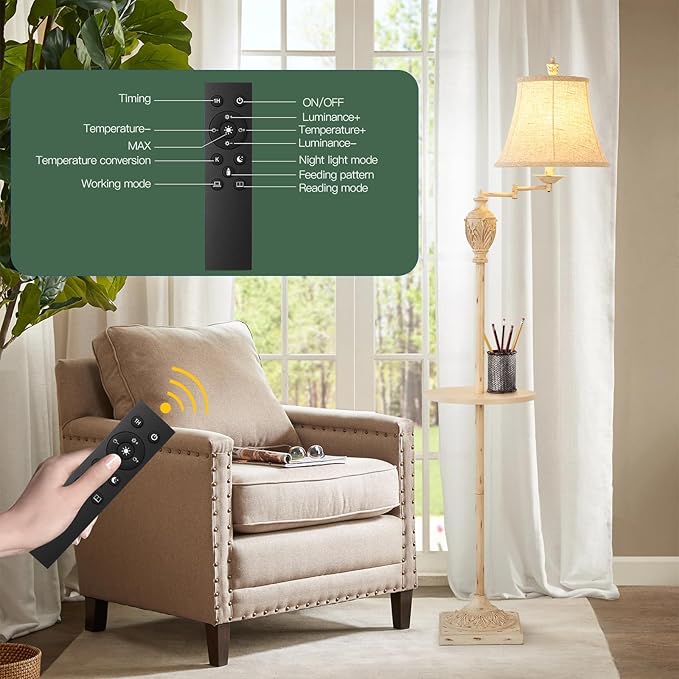 Traditional LED Floor Lamp with 350° Adjustable Swing Arm Lamp – Vintage Standing Pole lamp for Living Room, Bedroom and Office – Rustic Upright Floor Light for Home Décor with Silk Fabric Shade