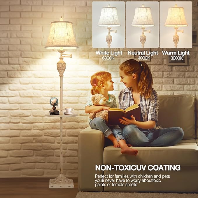 Traditional LED Floor Lamp with 350° Adjustable Swing Arm Lamp – Vintage Standing Pole lamp for Living Room, Bedroom and Office – Rustic Upright Floor Light for Home Décor with Silk Fabric Shade Sale