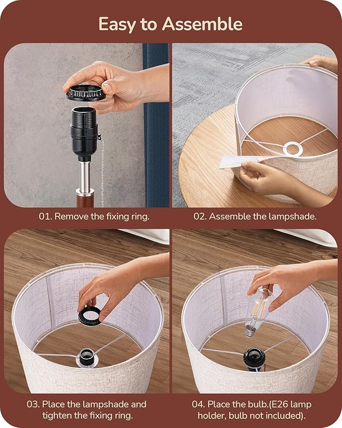 EDISHINE Mid Century Table Lamp, Solid Wood and Metal Bedside Lamp with Pull Chain Switch & Beige Linen Shade, Retro Nightstand Lamp for Bedroom Living Room End Table, E26 Base