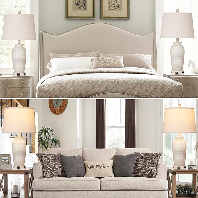 24.3" Farmhouse Jar Table Lamps Set of 2, 3 Way Touch Control Rustic Bedside Lamps with USB A+C Ports & AC Outlet, Pot Nightstand Lamps for Bedroom Living Room (LED Bulbs Included)