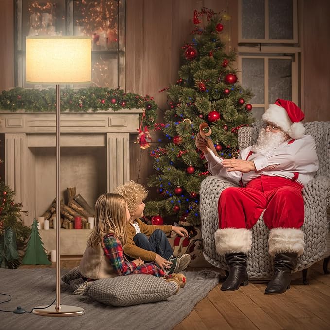 Ambimall 60'' Modern Floor Lamp with Shade, Tall Lamps for Living Room, Bedroom, Office, Dining Room, Beige Shade with Brown Pole(Without Bulb)