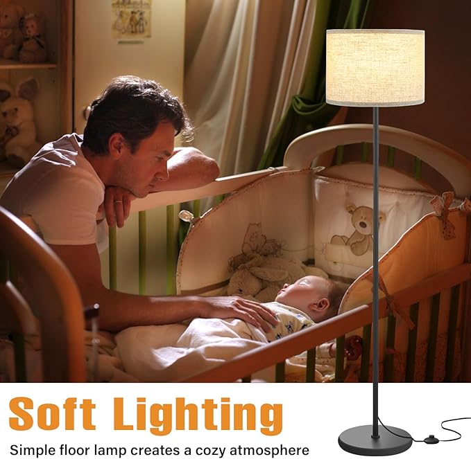 Ambimall 61'' Modern Floor Lamp with Shade, Tall Lamps for Living Room, Bedroom, Office, Dining Room, Beige Shade with Black Pole(Without Bulb)