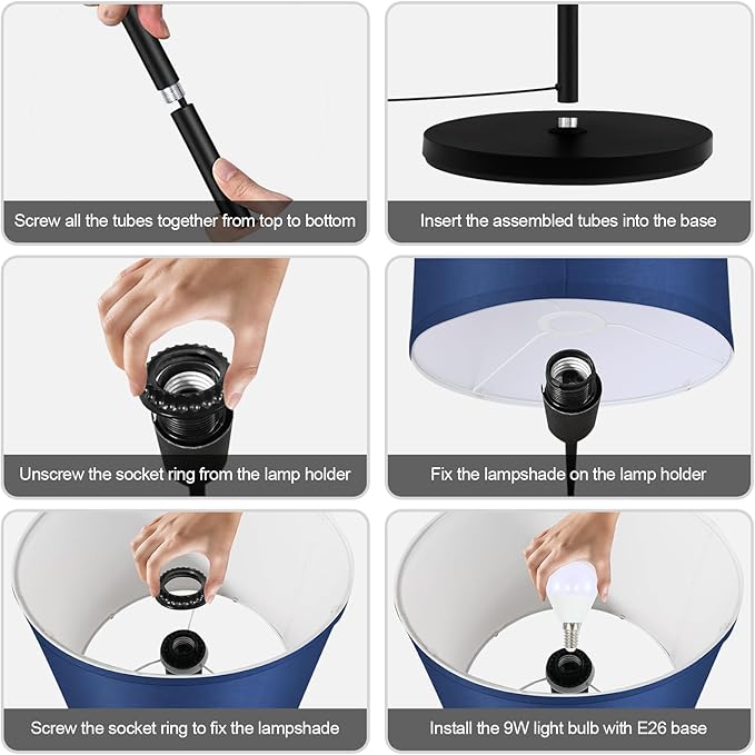 BoostArea Floor Lamp Blue, Standing Lamp, Small Floor Lamps for Living Room, Simple LED Tall Lamp with Lampshade, On/Off Foot Switch, Corner Pole Lamps for Bedroom/Office/Kids' Room(Without Bulb)