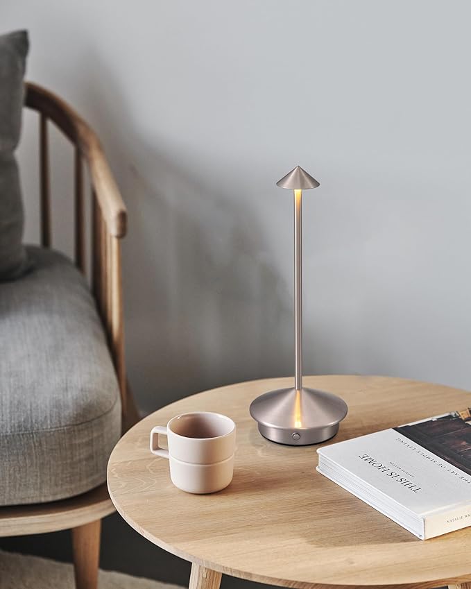 Modern Cordless Table Lamp Set of 2, Portable LED Desk Lamps, 5000mAh Rechargeable Battery Operated Lighting for Bedroom Dining Room Restaurant Coffee Shop Camping Night Light (Brushed Nickel)