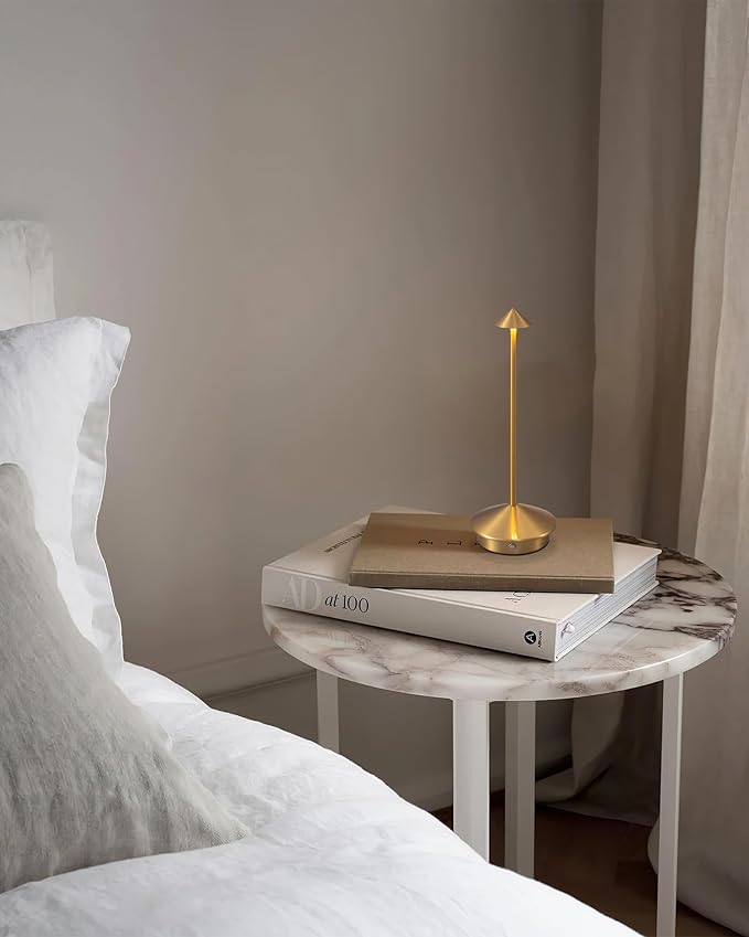 Modern Cordless Table Lamp Set of 2, Portable LED Desk Lamps, 5000mAh Rechargeable Battery Operated Lighting for Bedroom Dining Room Restaurant Coffee Shop Camping Night Light (Gold)